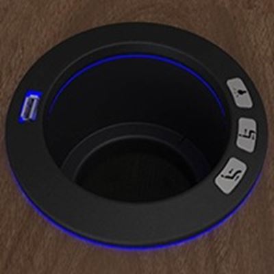 瑞飞尔公司的杯架具有用于斜倚,照明和USB充电功能的按钮式控制。