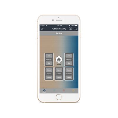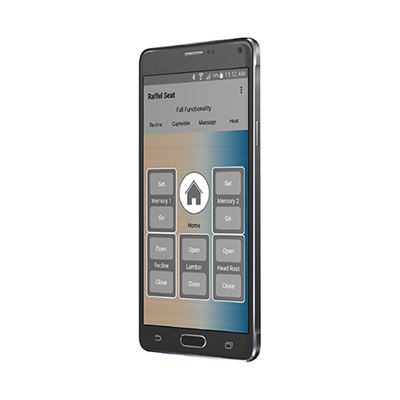 通过瑞飞尔的座椅应用系统(在苹果或安卓系统可下载) 用户可以控制他们的家具几乎任何运动或舒适功能。