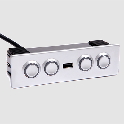 这个五键控制器允许用户改变座椅倾斜度,调节头枕角度,并从一个控制装置为USB装置充电。